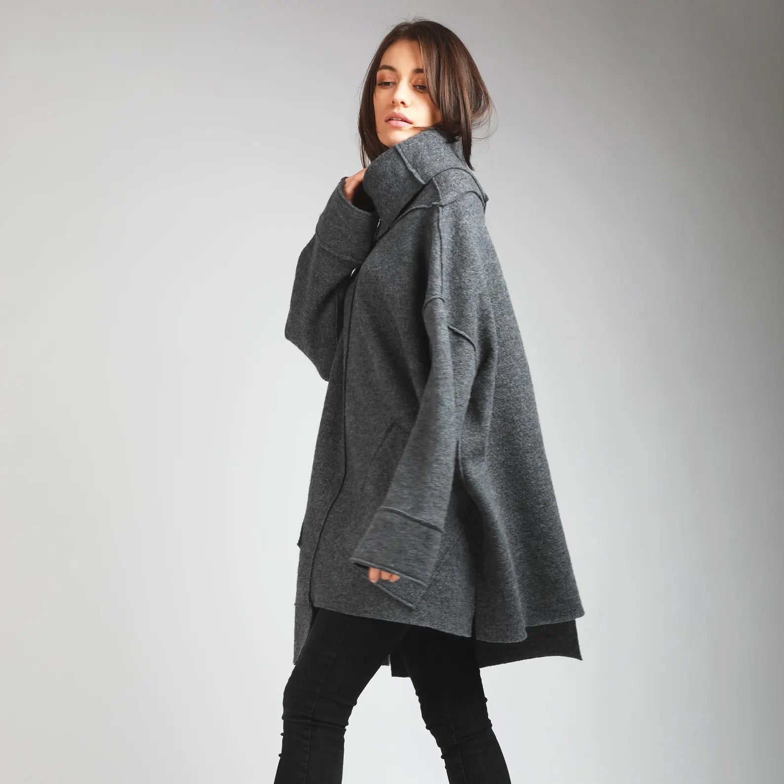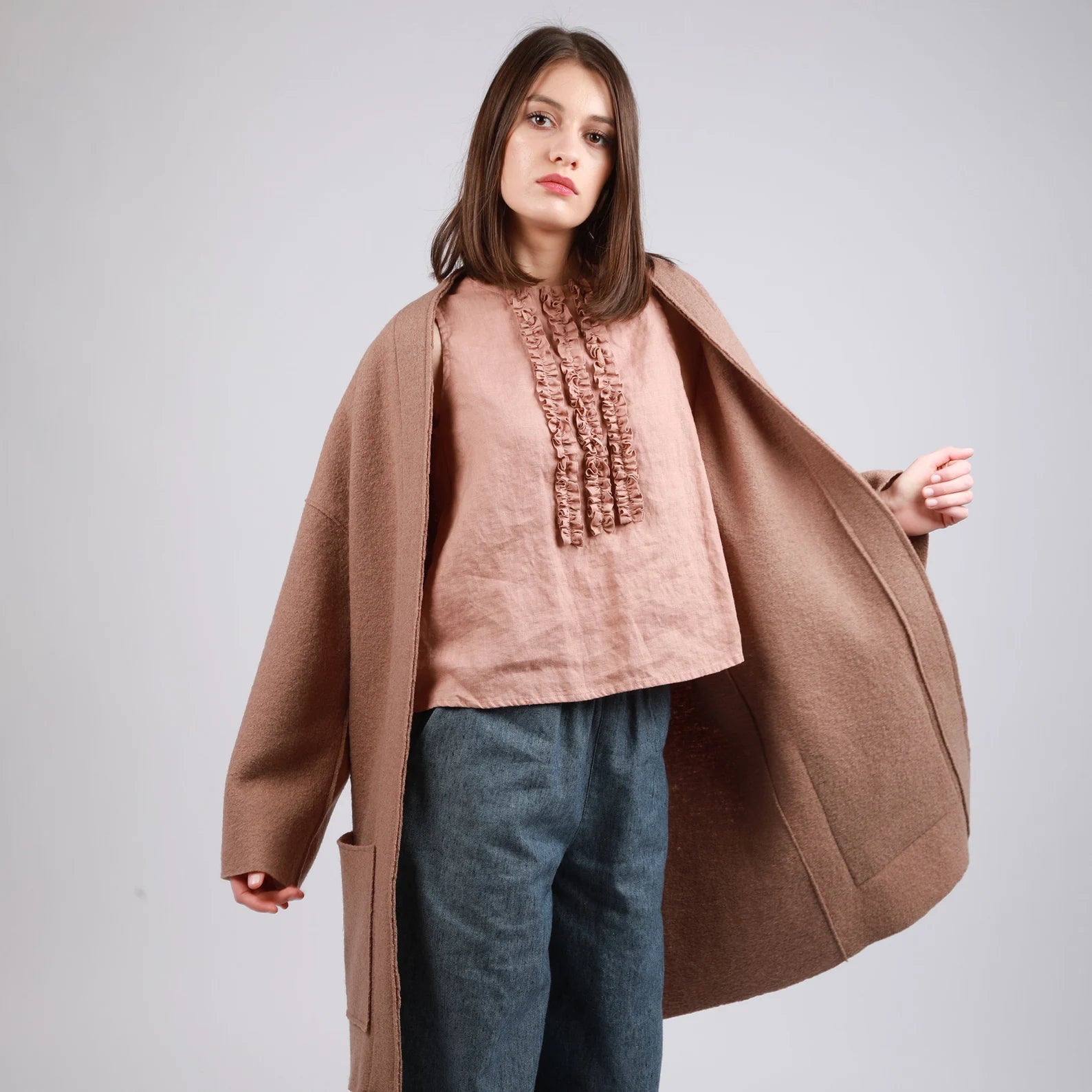 Designed with a clean, modern silhouette, each coat embodies our commitment to sustainability and exquisite craftsmanship. Thoughtfully handmade, they provide a soft yet structured feel, keeping you cozy without bulk.