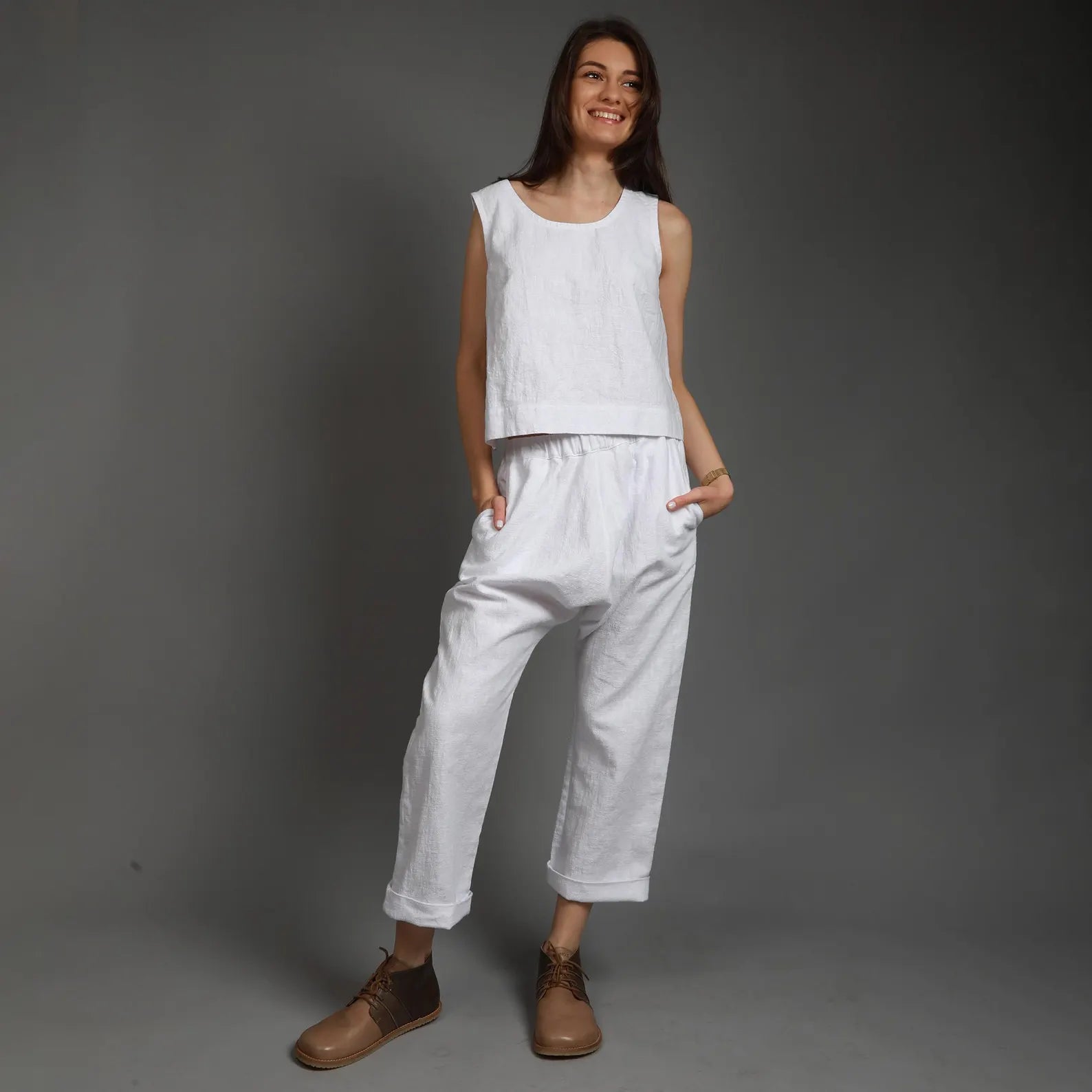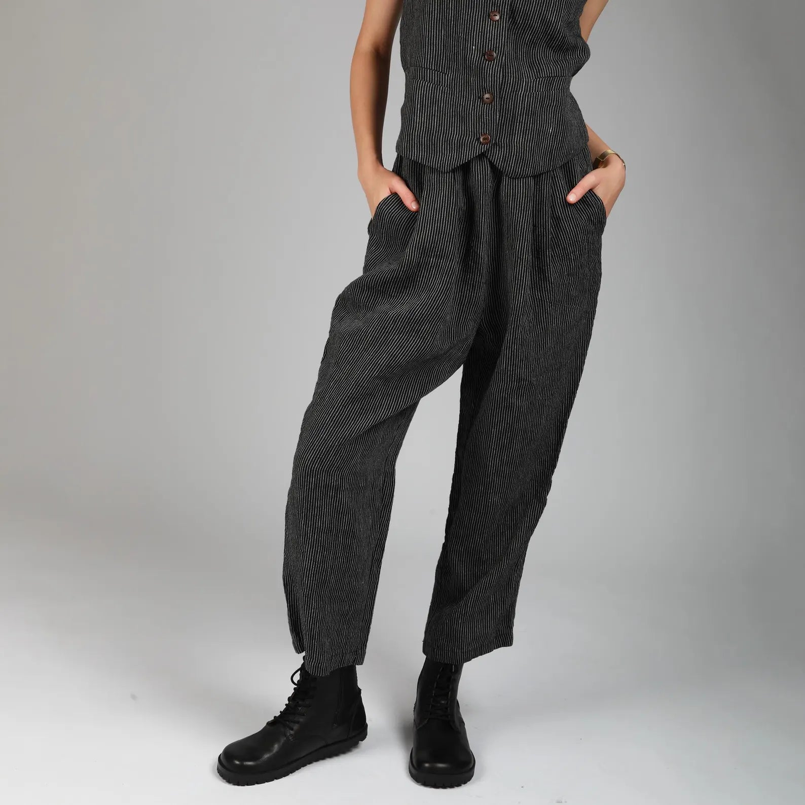 Pants are a go-to favorite for any occasion. And when made of linen the possibilities are endless. Discover our collection of relaxed, versatile and comfortable linen pants in various lengths and styles. They easily match our linen tops and blouses and can be easily styled up or down with just your favorite pair of shoes for your occasion.