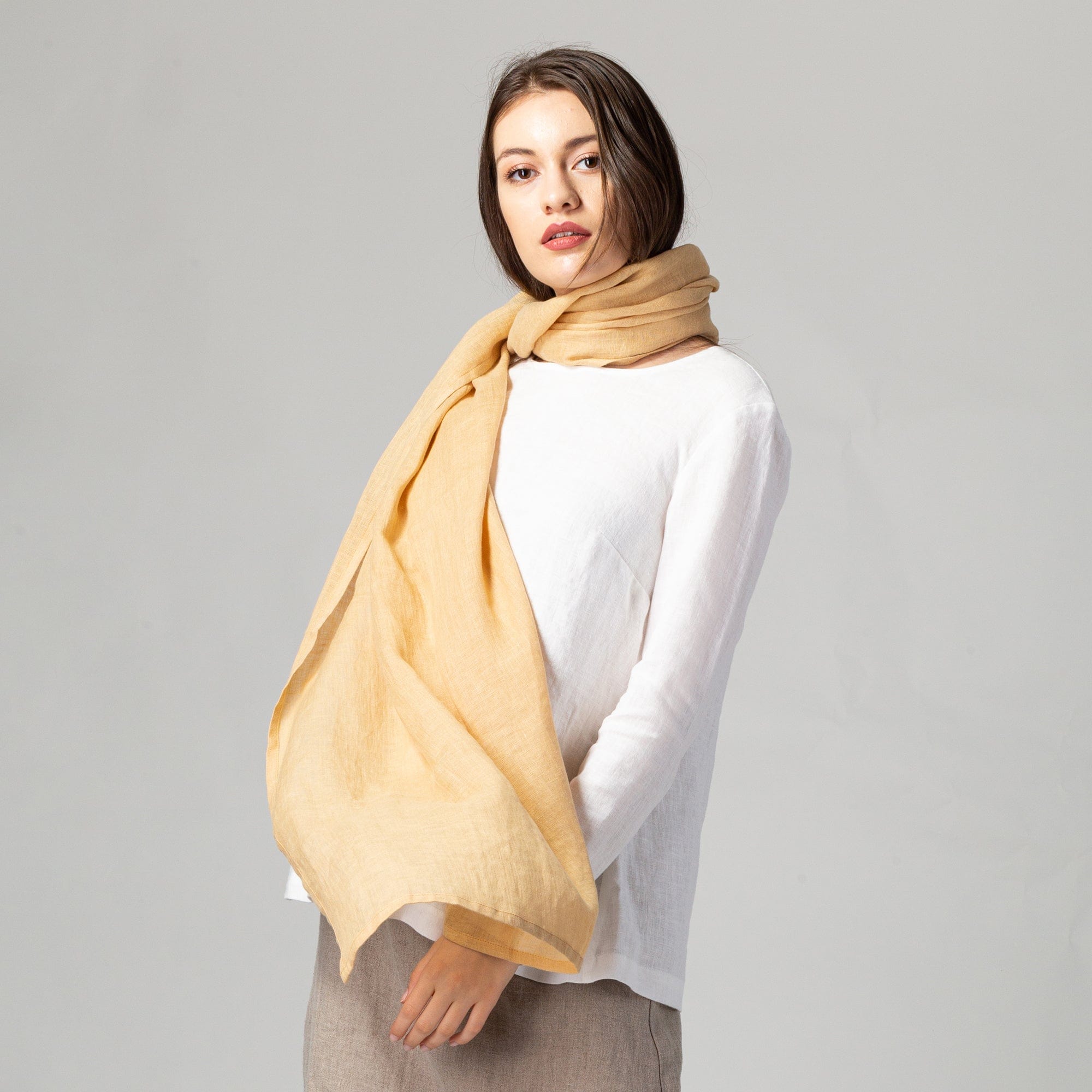 Light and sheer, minimalist in style and generous in size, our linen scarves are an essential piece of any capsule wardrobe. All in a muted color palette that makes them easy to match and style. Made of sustainable, ethical, pure European linen.