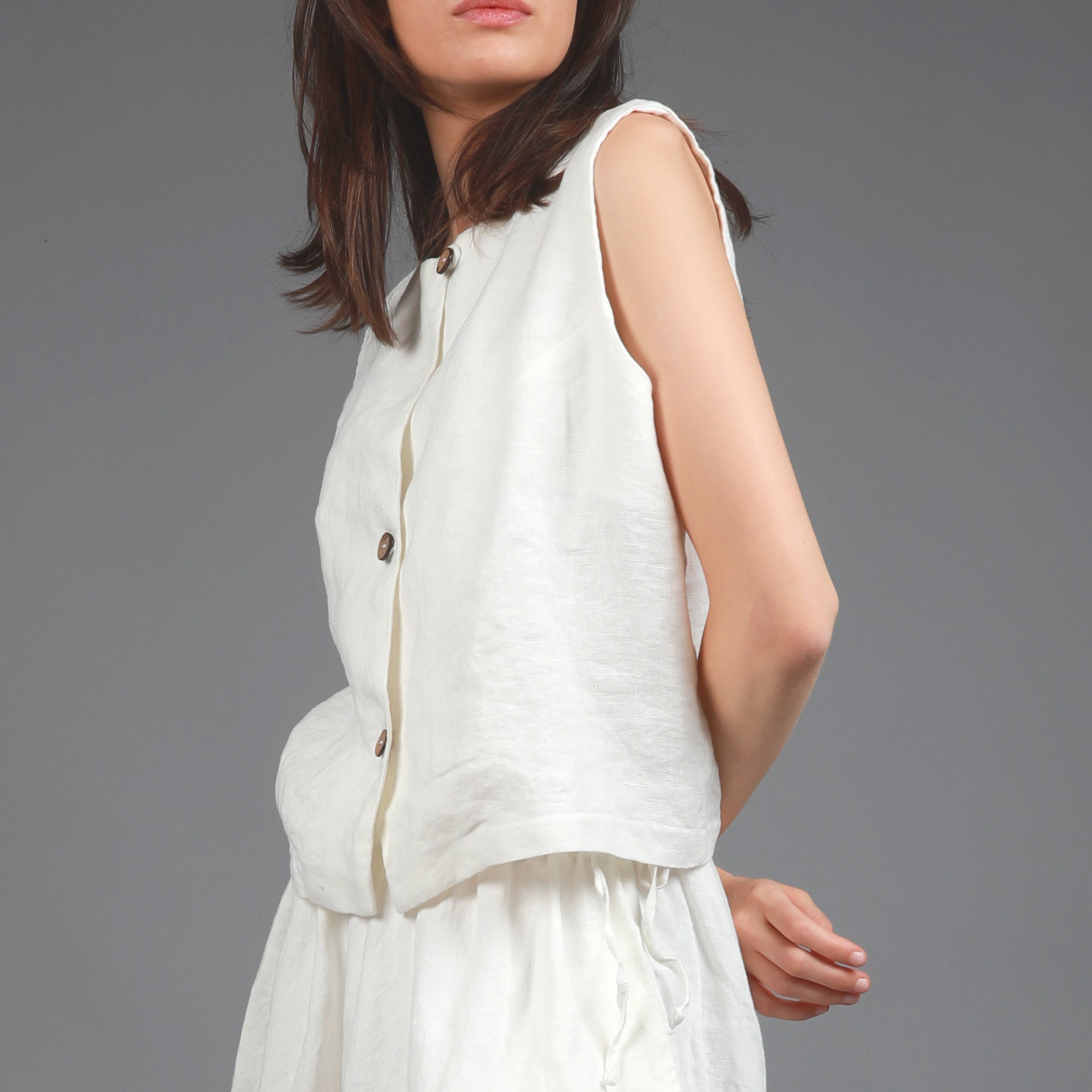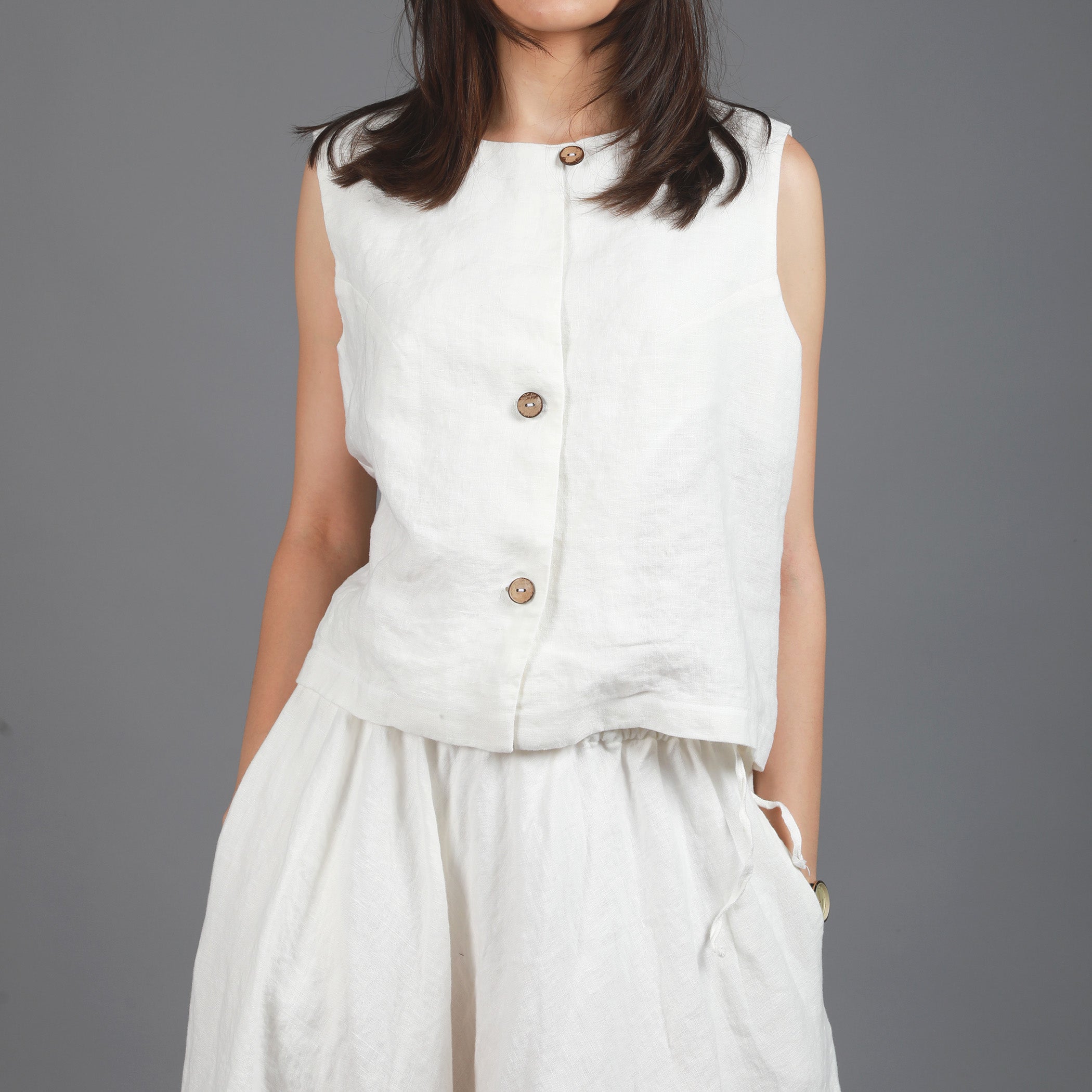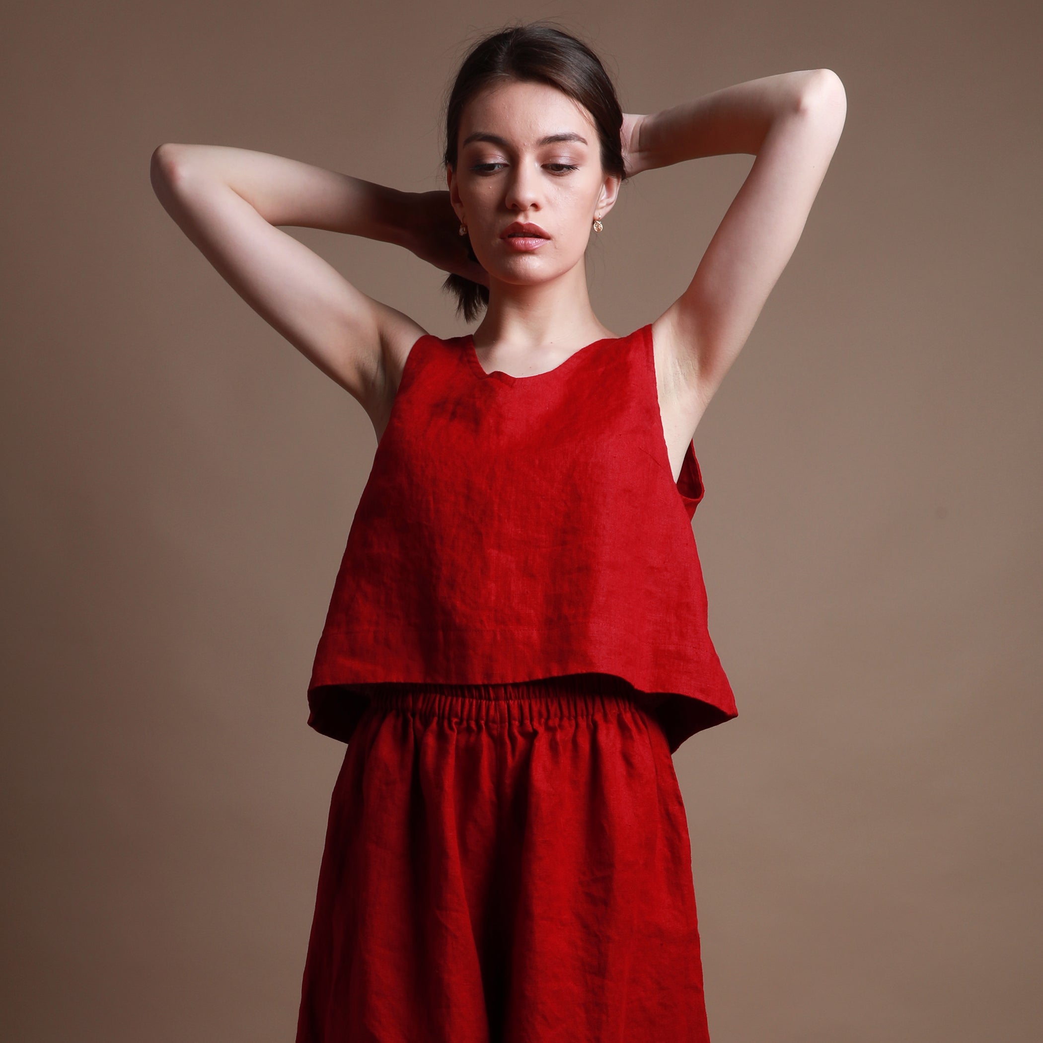 Essential in the hot season and a perfect layering option all year round, our Knotium sleeveless tops come in a variety of styles and color options. Very light and easy to match, they are the perfect complement to our skirts and pants. All ethically made from 100% EOKO EX certified European linen.